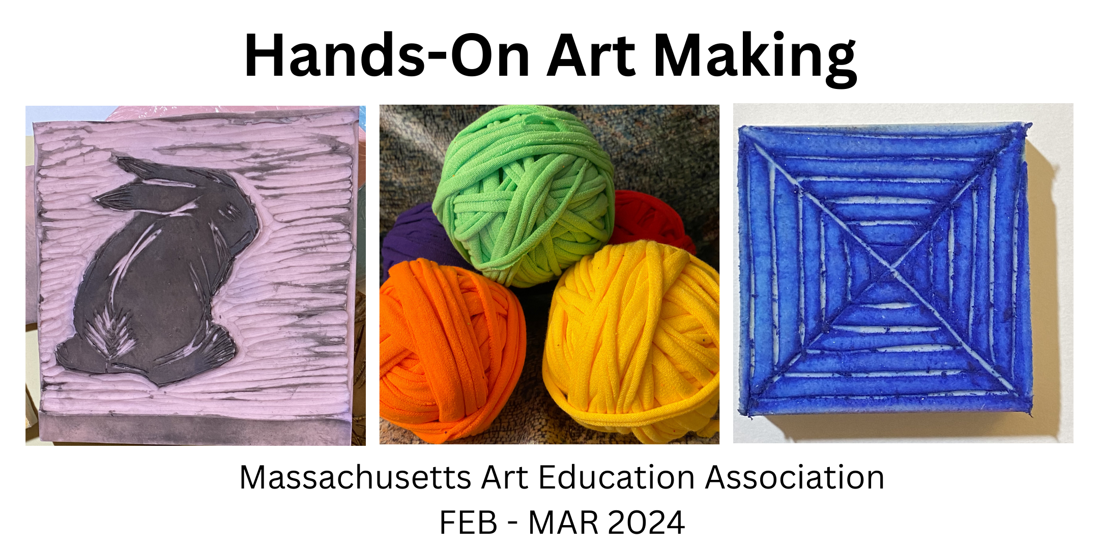 We are also offering monthly Hands-On Art Making sessions online. The February and March offerings have been scheduled already and will focus on stamp carving in February and working with t-shirt yarn in March. Each month the same session is scheduled for Thursday and Saturday to make it accessible for the most art educators. More information and the link to register can be found here.