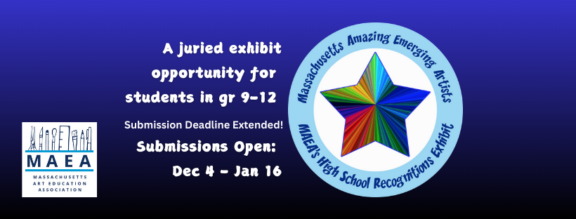 The MAEA Recognitions Virtual Exhibit is accepting submissions now through January 16, 2026. This juried exhibit is open to students in grades 9-12. Teachers submitting work must be MAEA members. Check out the exhibit submission deadline and schedule below and visit the Recognitions Exhibit page for everything you need to know.